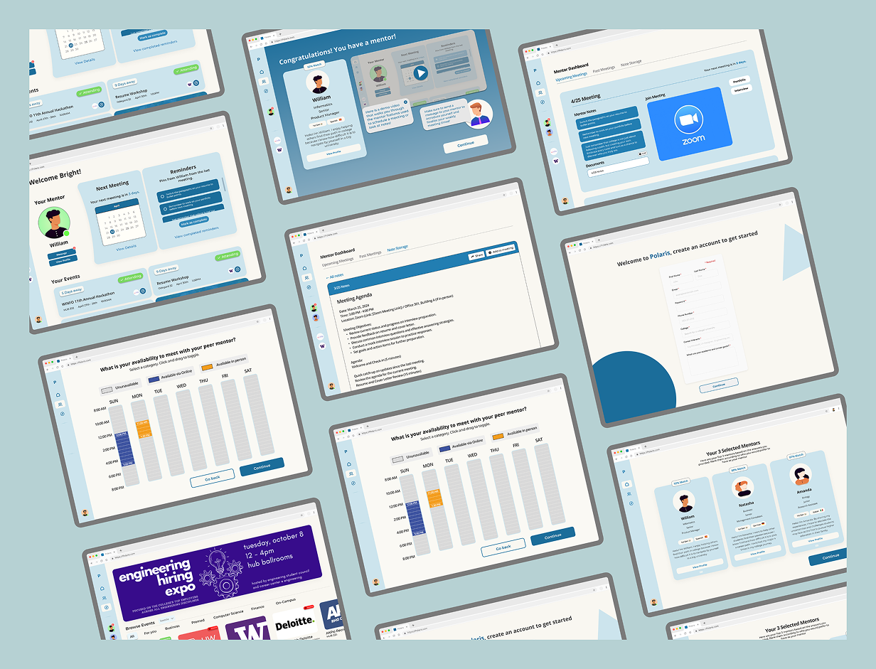Polaris is a website application that addresses community and unawareness by letting students pair up with a mentor who might be more familiar with academia, and can guide them through their academic career through their wisdom and lived experiences. Students can connect with a mentor on a personal and deep level to get the insights and guidance they need to advance to their academic goals. Additionally, students can easily and efficiently browse for academic events that give them the chance to explore or experience a specific industry field.